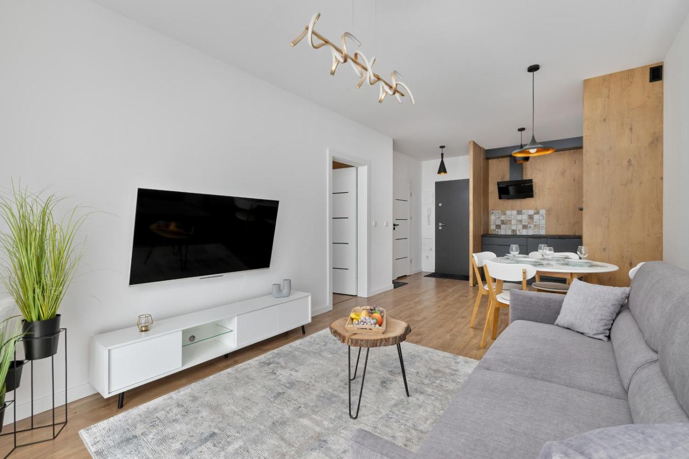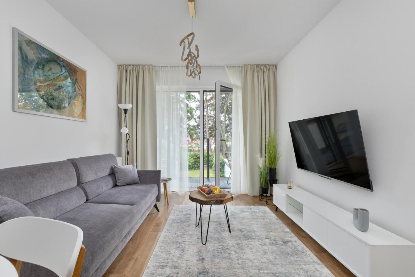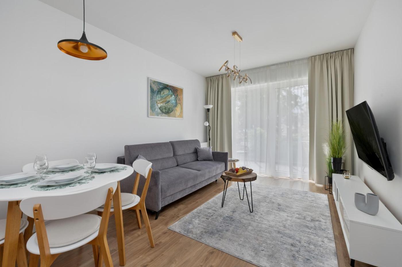 Apartament z 1 sypialnią. This apartment features 1 living room, 1 separate bedroom and 1 bathroom with a shower and free toiletries. The fully equipped kitchenette has a stovetop, a refrigerator, a dishwasher and kitchenware. Boasting a balcony with garden views, this apartment also features a washing machine and a flat-screen TV. The unit has 2 beds. Apartament - 4 osobowy. Powierzchnia pokoju ok.: 40 mkw.
